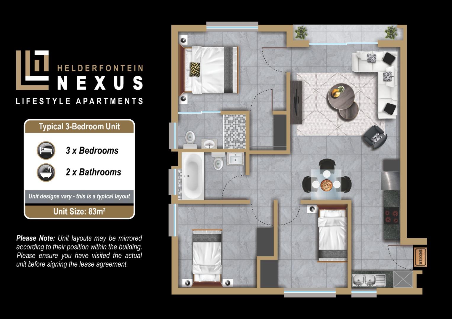 Come home to Helderfontein Nexus Lifestyle Apartments, located off Winnie Mandela Drive (ex William Nicol Drive) in Dainfern, Gauteng. These rental apartments are available in 1-, 2- & 3-bedroom layouts and boast designer fittings and finishes.
