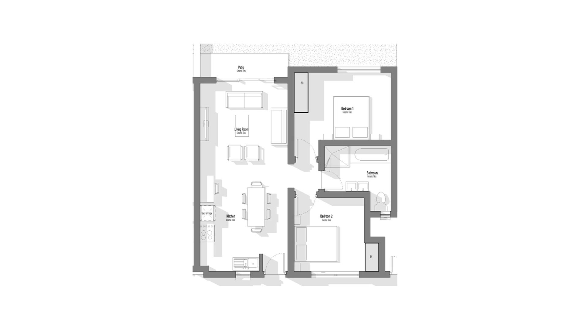 * Covered parking for all units (2 Bed, 2 Bath units get 2 parking bays)