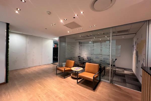 This fully fitted second-floor office unit in Design Quarter offers 438m2 of premium workspace, ready for immediate occupation. The unit features a welcoming reception area, multiple private offices, boardrooms, an open-plan ...